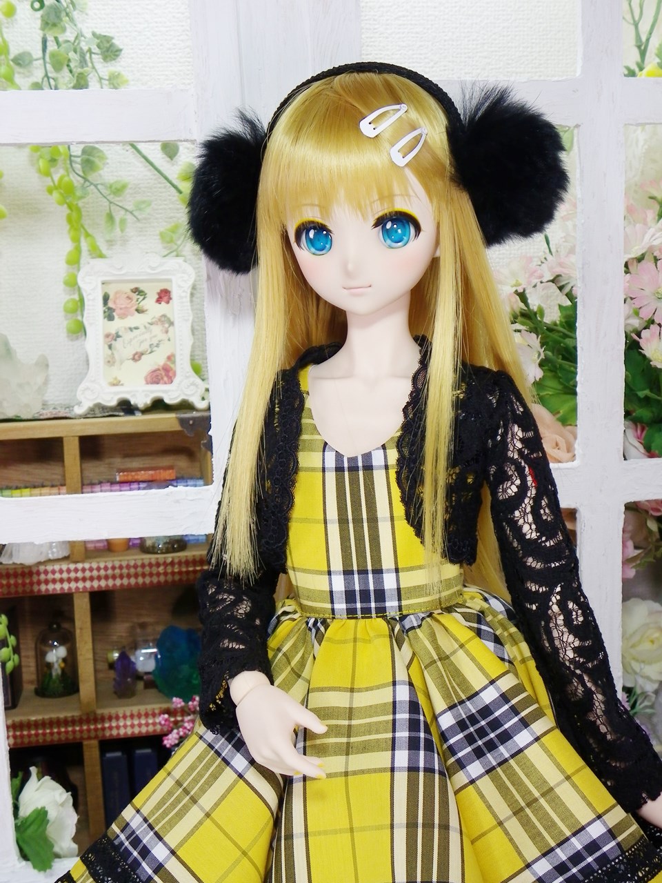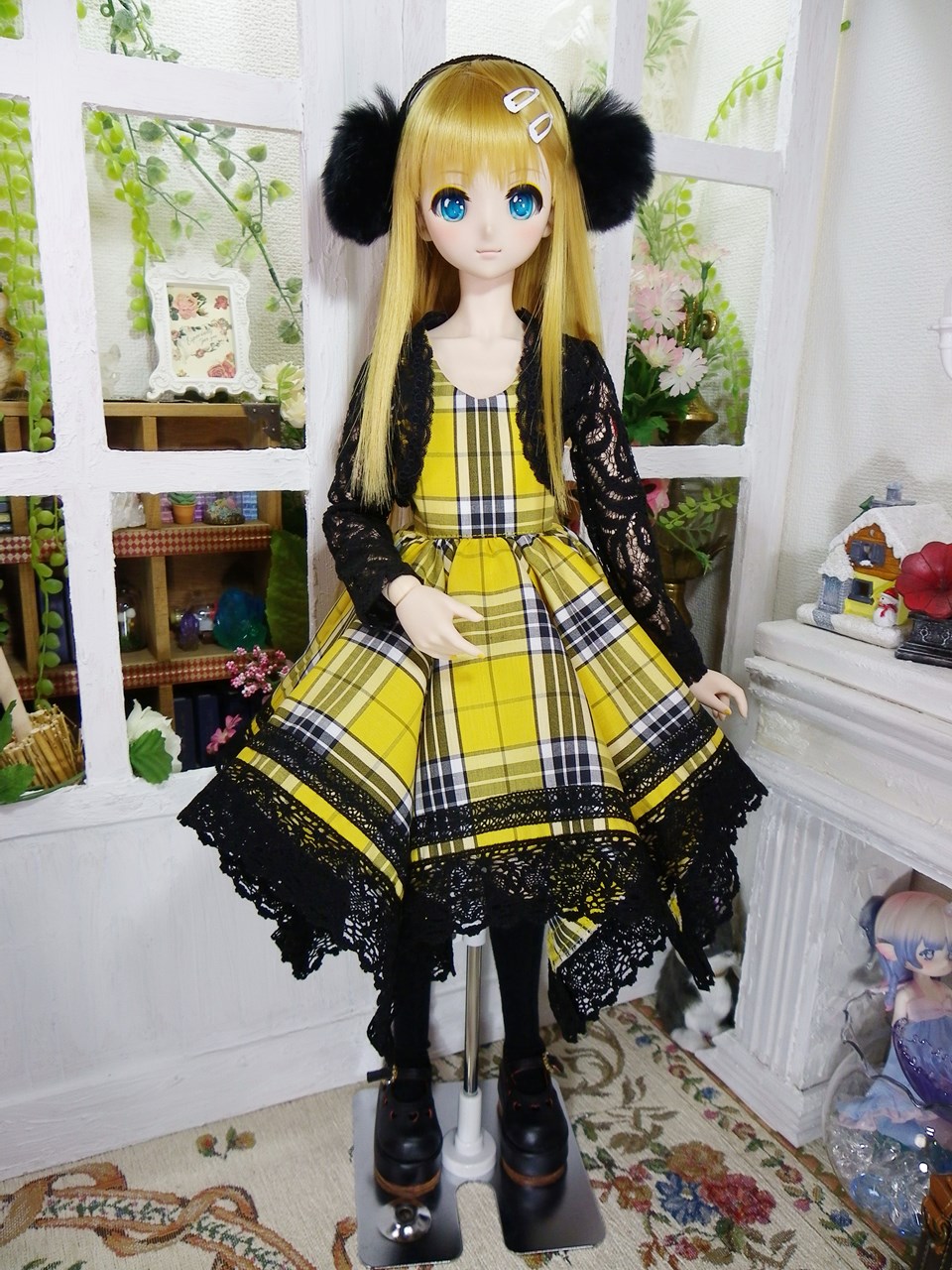 黄色のチェック柄生地を使用しておでかけOPsetを制作致しました。