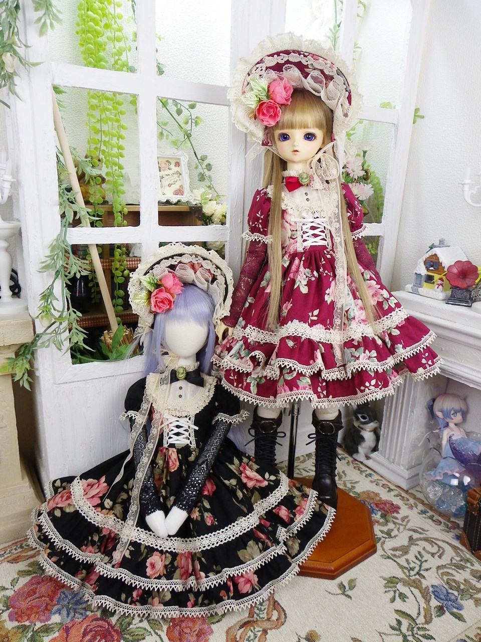 クラシックな薔薇柄の生地を使用してふんわり広がるロリータ服を制作致しました。