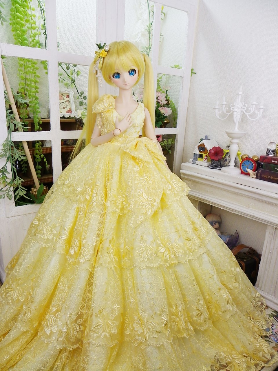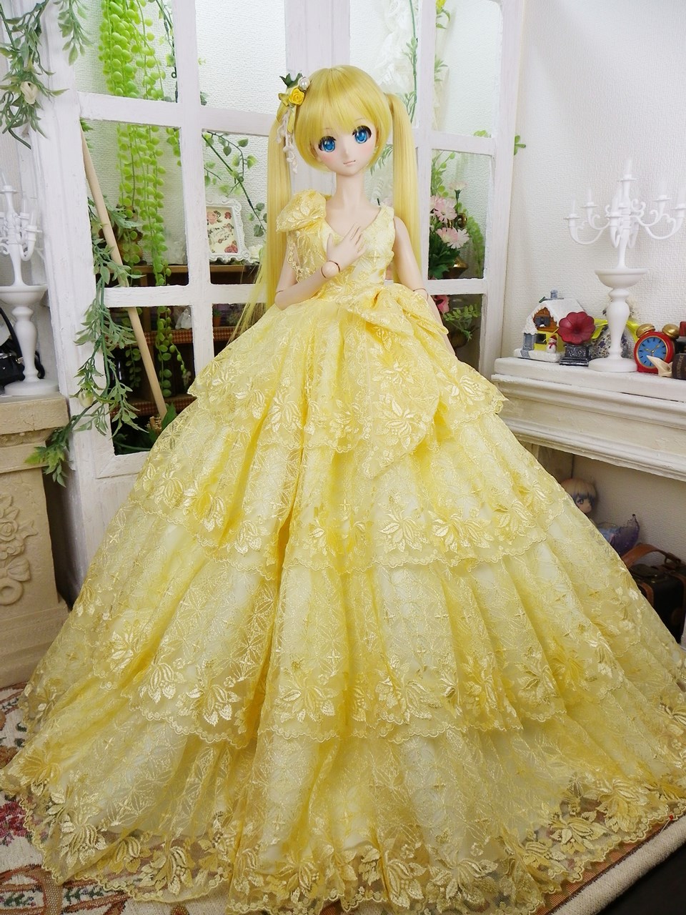 黄色いチュールレースを1反まるまる使いかなり豪華なドレスに仕立てました♪