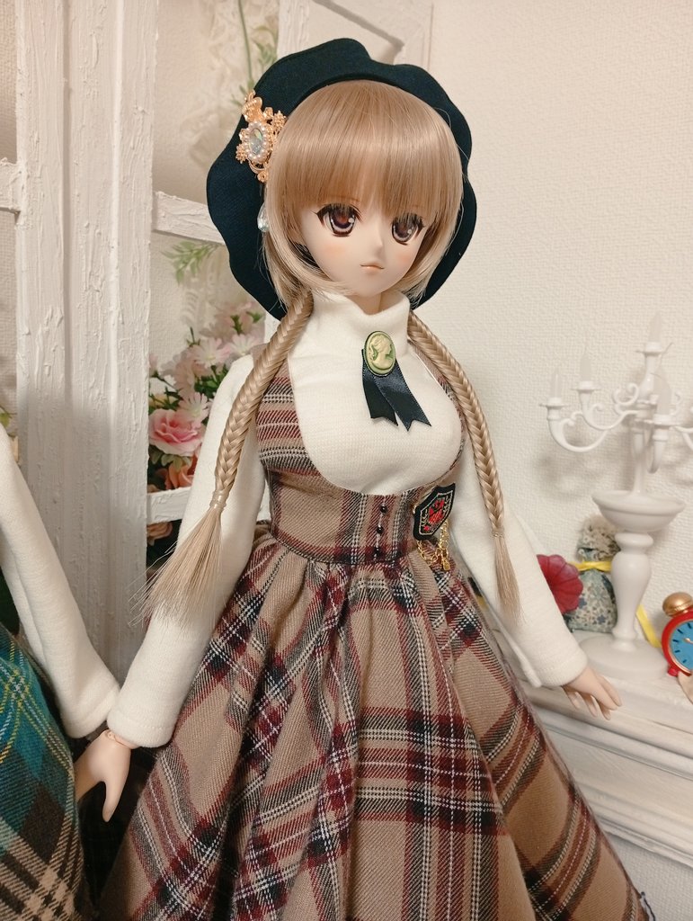 グリーンチェックの方は丈を短めに、茶色のチェックはレースが変更となっております。