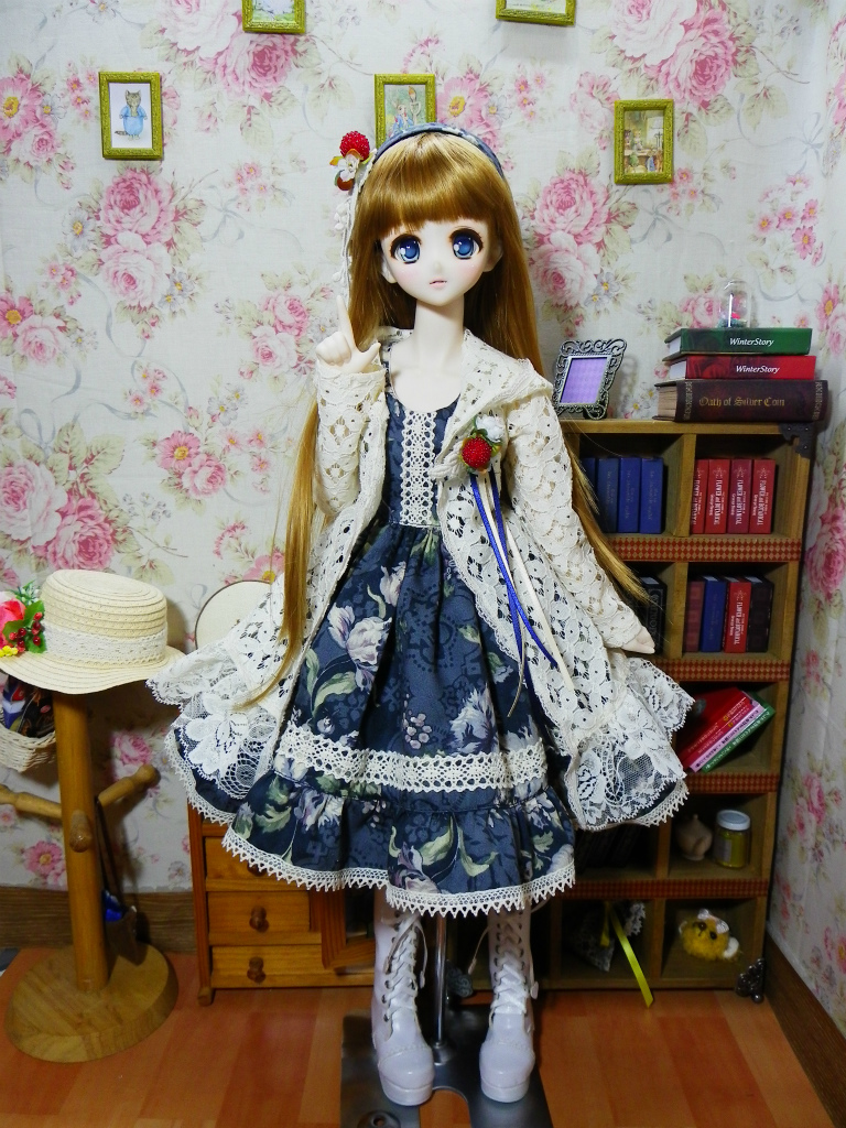 紺色の花柄ジャガード生地を使用して冬向けの木漏れ日OPsetを製作致しました。