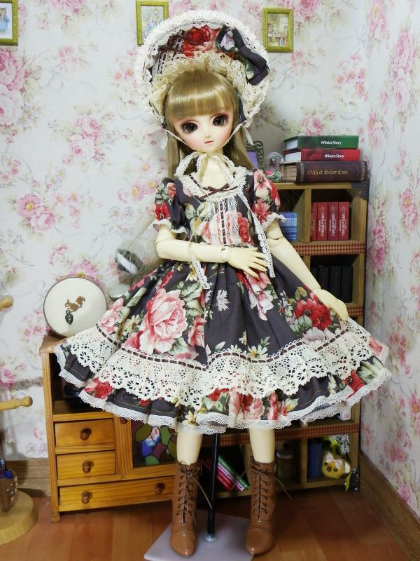 こげ茶の花柄生地を使用して1点物のワンピースを製作致しました。