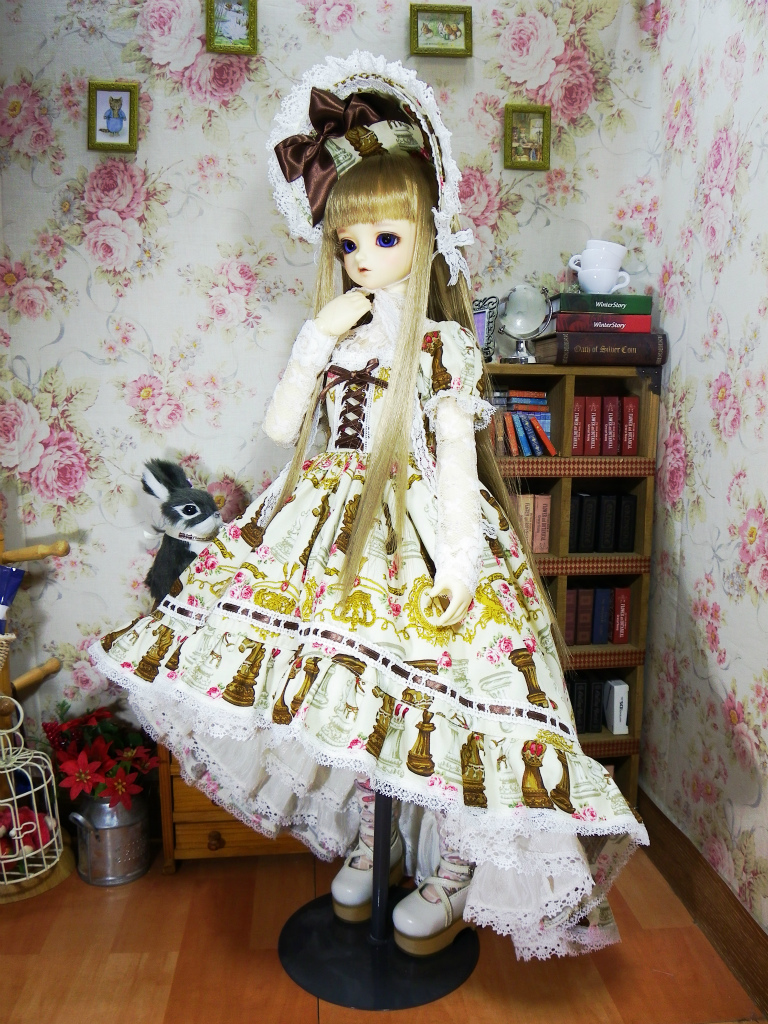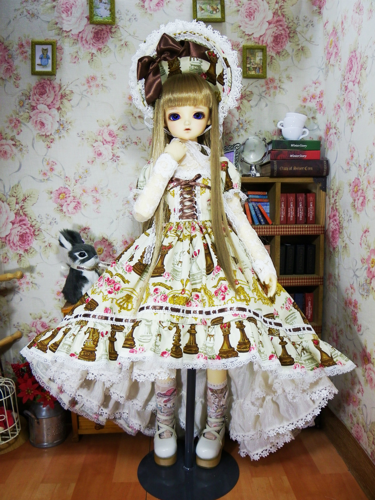 チェス柄の生地を使用してトレーンタイプのワンピースを製作致しました。