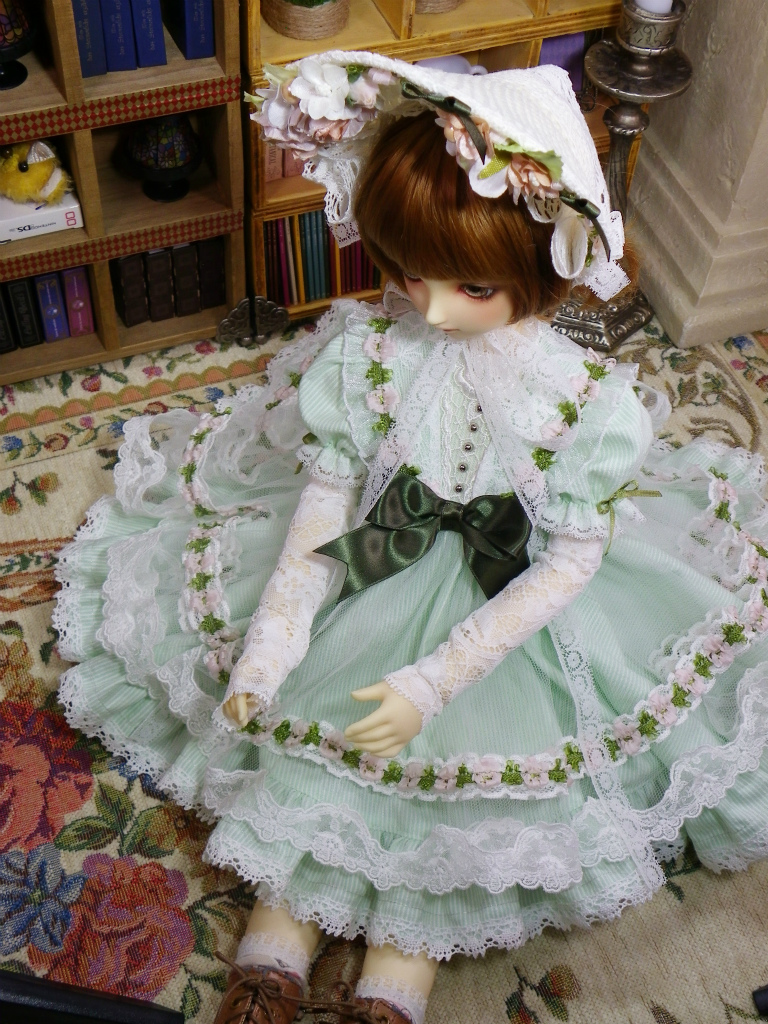 お洋服はセーラー襟付きのハイウエストのワンピースになります。