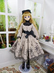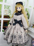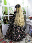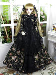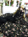 黒の薔薇柄の生地を使用してかなりボリュームがあるロング丈のワンピースを制作致しました。
