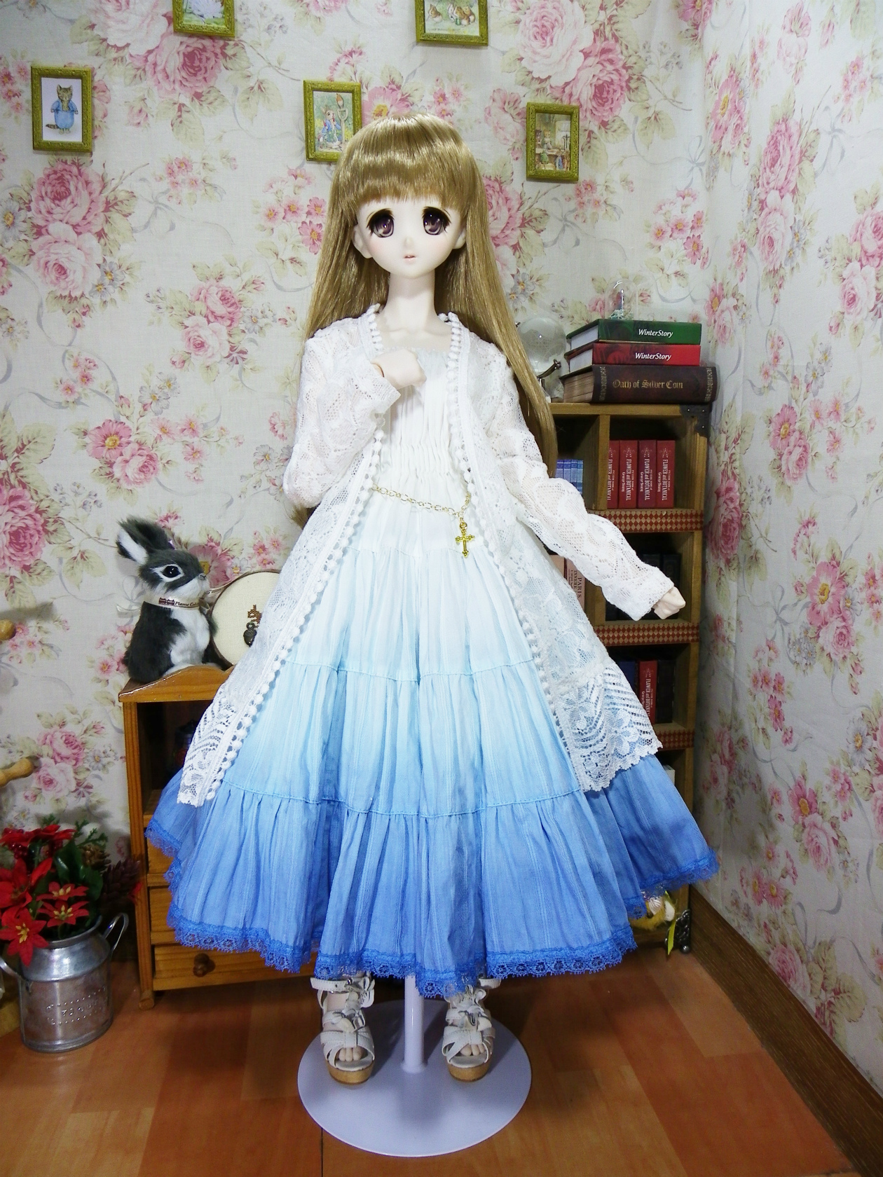 ワンピースはふんわりに広がりますので座らせると綺麗に全円広がります。